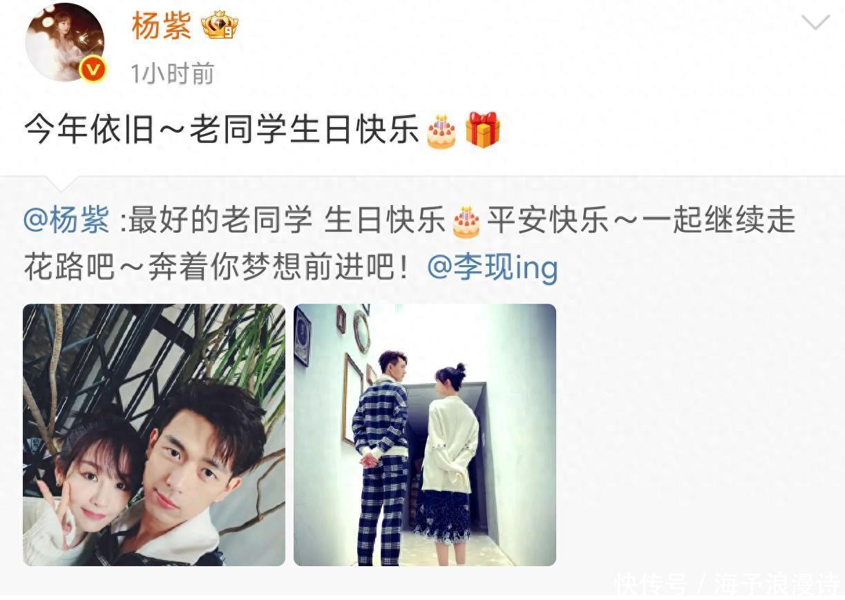 据悉,杨紫、李现是大学同学,还在军训中秋晚会共同主持。从19年大爆剧《亲爱的,热爱的》播出至今,两位的友谊一直很稳定,每年都会为对方庆生。在今年两人二搭合作的《国色芳华》播出不错。